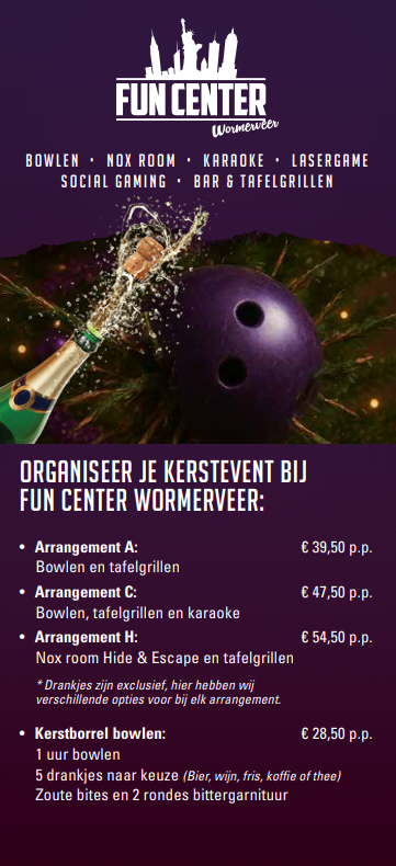 Combineer je kerstborrel of diner met een bowlen of één van onze geweldige groepsactiviteiten.